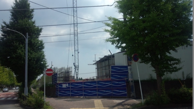 現場に近づくと、遠くにタワークレーンが見えてきました。