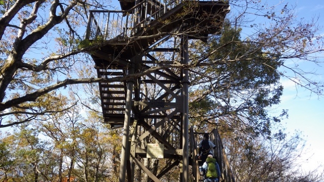 山頂 には 鉄塔の見晴台、複数のベンチ・テーブル が有り、