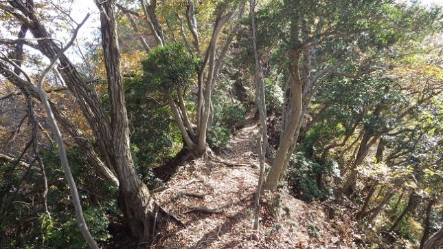 この辺りから、油断すると 滑落しそうな 山道へ、