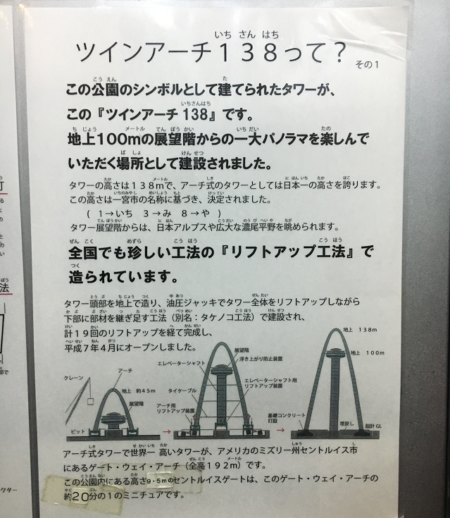 場所は愛知県一宮市。木曽川に近い138タワーパークにあるアーチ式タワーと呼ばれるタワーです。