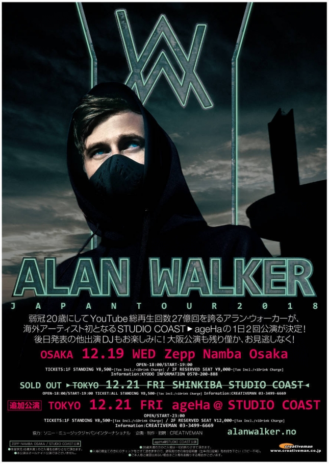 昨年の12月ですが、 Alan Walker を見に行ってきました♥