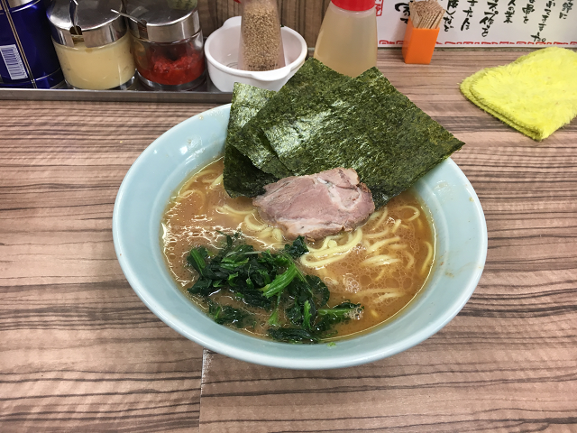 新中野駅すぐの「武蔵家 中野本店」の家系ラーメンです。