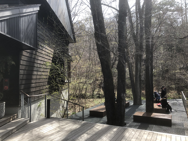 星野リゾートが軽井沢で運営するハルニレテラスに行ってきました。自生していた100 本を超えるハルニレ(春楡)からつけられた名前だそうで、モダンな建物を広いウッドデッキでつないだ軽井沢の日常をイメージしたテラスです。