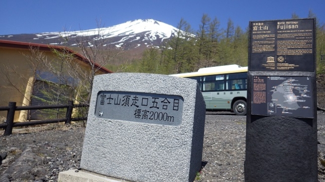 バスに揺れながら約1時間、富士山 須走口 五合目 に到着 。