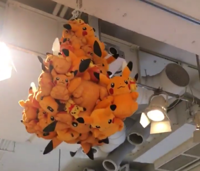 ピカチュウのぬいぐるみが束になって天井から吊るされていました(^o^)丿