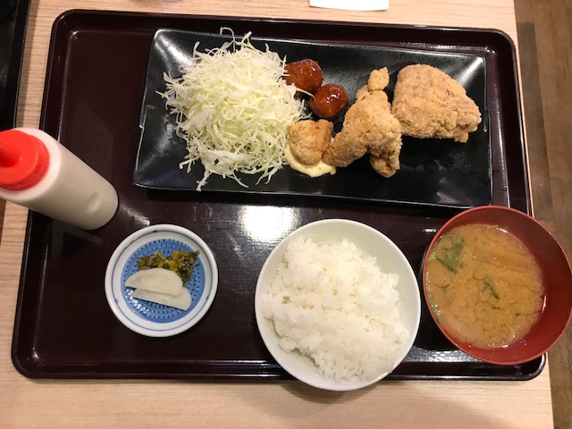唐揚げ定食 にすべきと 後悔 、量が多くても食べれたと 。