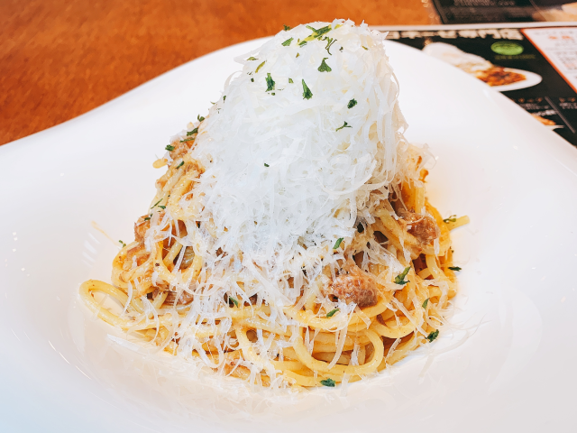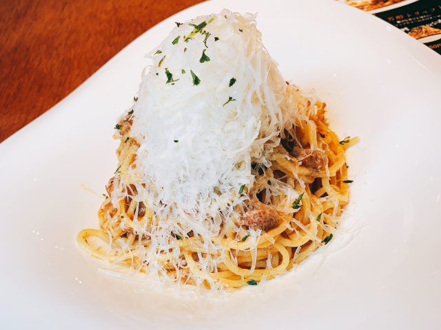 更に+350円でパスタが見えなくなる程チーズが盛られるかまくらと呼ばれる