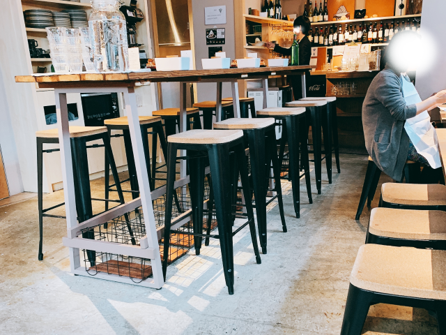 夜はワインバーをやっているので奥にバーカウンターがあります。