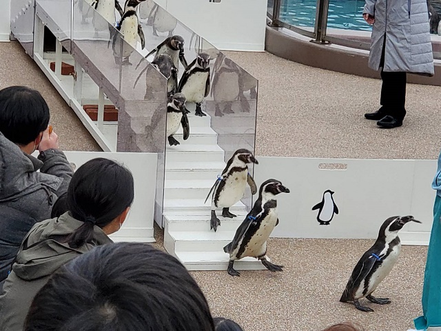 大人気のペンギンのお散歩タイムというプログラムを見ることができました。