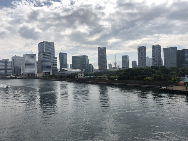 湾岸線沿いに浜離宮恩賜庭園方面に向かい