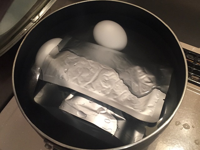 調理方法?は袋のまま沸騰させたお湯に入れ、そのまま弱火で10~12分温めるそうなので