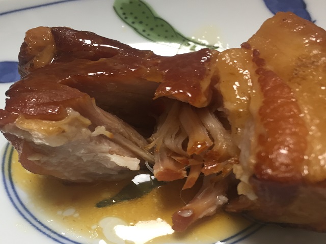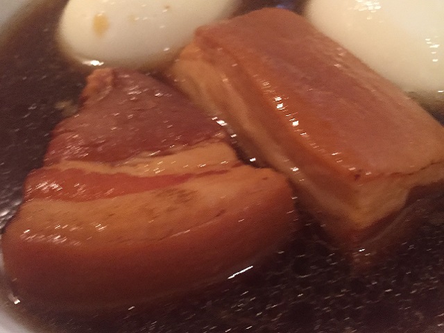 で箸でさけるくらい柔らかく煮込んであります。味もしっかりとついておりタレだけでも