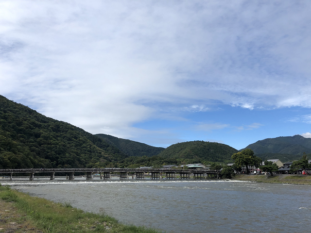 駅についてしばらく歩くと、有名な渡月橋が見えます。