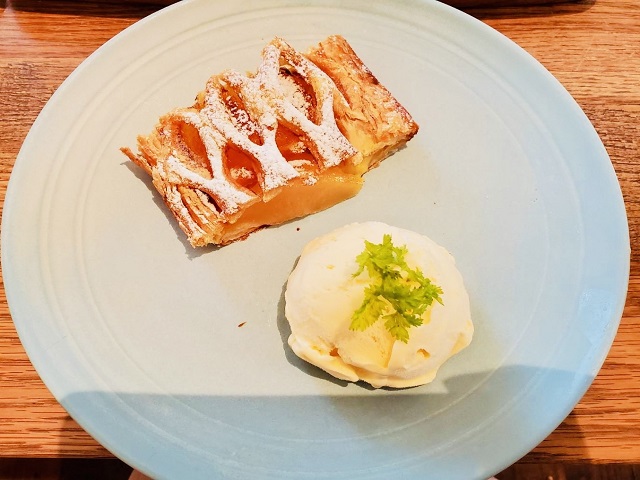 あたたかいアップルパイと冷たいバニラアイス。お口の中が幸せになりました。