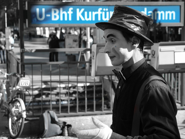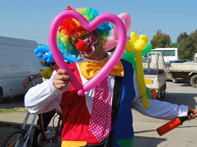 赤い鼻をしたカラフルな格好の、大道芸をやっているような彼だと思うのですが、
