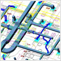 建築関係のCADの中でも建築設備という分野に特化した専用CADもあり、それらを建築設備CADと呼びます。基本的な機能として、部材記号や配管・配線を表示する線種が標準登録されています。配置・ルートの変更などを容易に行なうことができるなどの機能を有しているのが特徴といえます。 国内ではCADWe'll CAPE、CADWe'll tf@s、同社の発売する3D CAD CADWe'll U/KITが主流のようです。